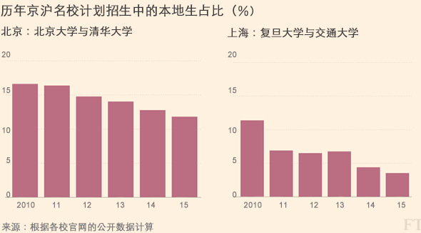 不到一周,大批中國考生即將走向高考考場,往名校窄門擠。長期以來,外省考生和家長質疑以北京大學、清華大學、復旦大學、上海交通大學為首的京滬名校,在高考招生上對本地學生有所保護。這樣的質疑是否屬實?本地及外省學生考入京滬名校的幾率這幾年有什么變化?通過數據,我們帶你一起解讀。