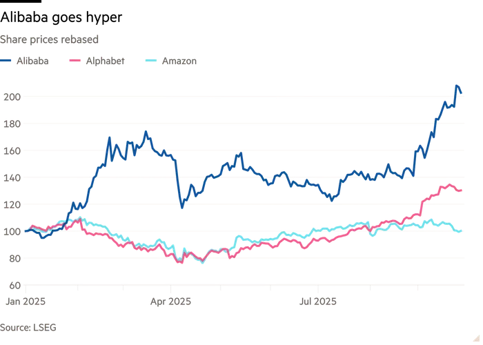 在過去一個月里,這家起步于線上零售、后來擴展至娛樂和云計算的集團,其在美上市的股票上漲了約40%。今年到目前為止,阿里巴巴的投資回報率甚至優于英偉達(Nvidia)、Meta平臺(Meta Platforms)和Palantir等美國科技巨頭。